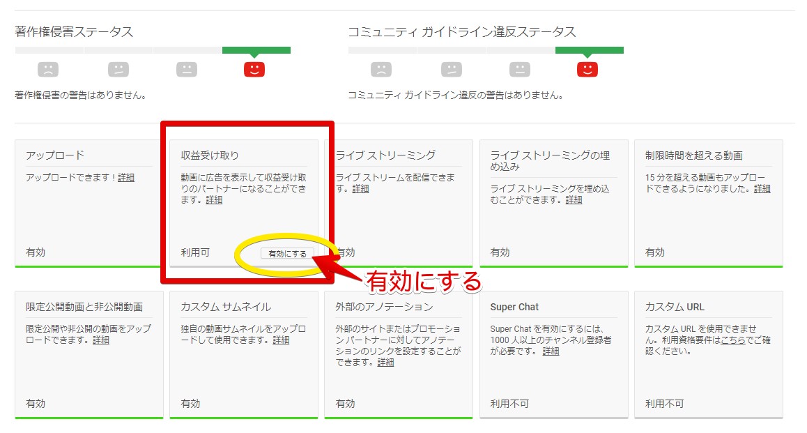 - チャンネルを収益化している