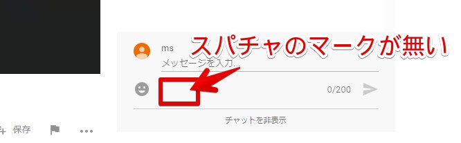 また、チャット機能自体を無効にしている場合もスパチャを利用できません。スパチャが無効のライブ配信には、スパチャのマークが表示されません。