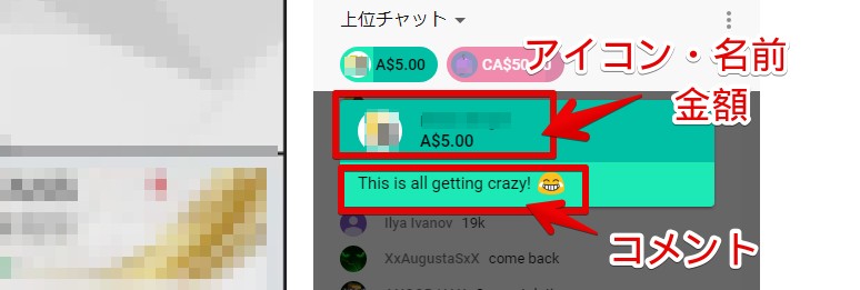 あとからライブの視聴を始めた人も、誰がスパチャを送ったのか一目で判るのが特徴です。スパチャの瞬間を配信者が見逃したとしても、固定されたアイコンと金額でアピールできます。