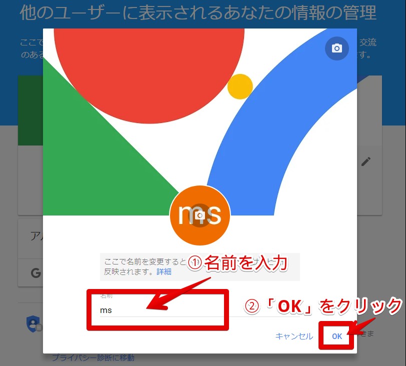 「Google」アカウントをほかのサイトでも使っている場合、そちらの名前やアイコンも同時に変更されるため注意が必要です。