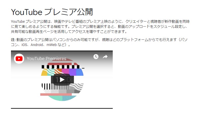 配信者が新作動画をあらかじめ「プレミア公開」に設定しておくと、公開動画の再生ページが作成されます。視聴者が公開動画の再生ページをリマインダーに登録すると、プレミア公開の30分前に予告が通知されます。