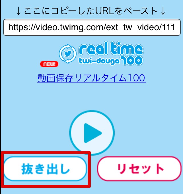 続けて「抜き出し」ボタンをタップし、動画の抽出を始めます。