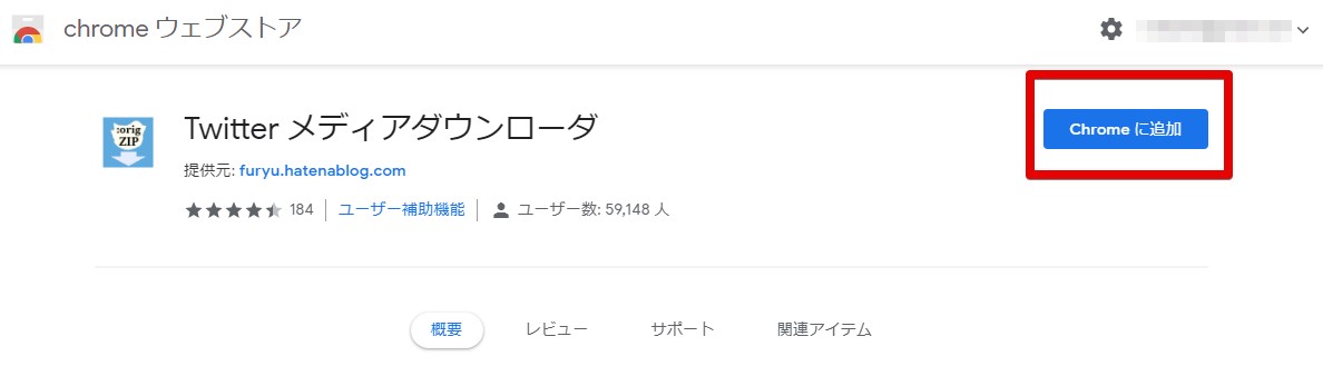 「chrome ウェブストア」公式サイト内「Twitterメディアダウンローダ」