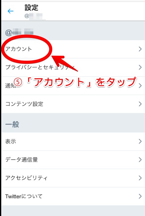 一覧から「アカウント」を選びましょう。