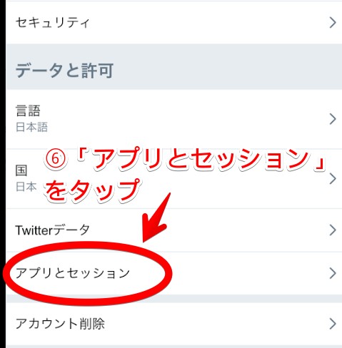 「アプリとセッション」という項目が下のほうにあるので、選択します。