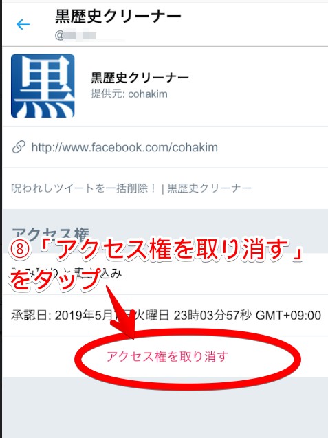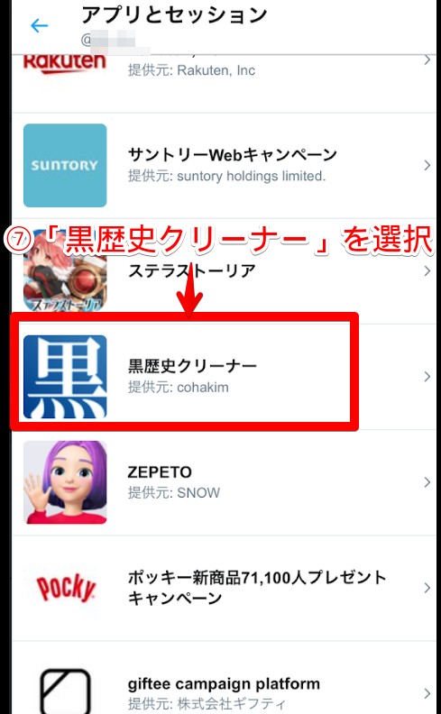 これまでに権限を許可しているサービスやツールの一覧が表示されます。その中から「黒歴史クリーナー」を選択します。