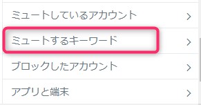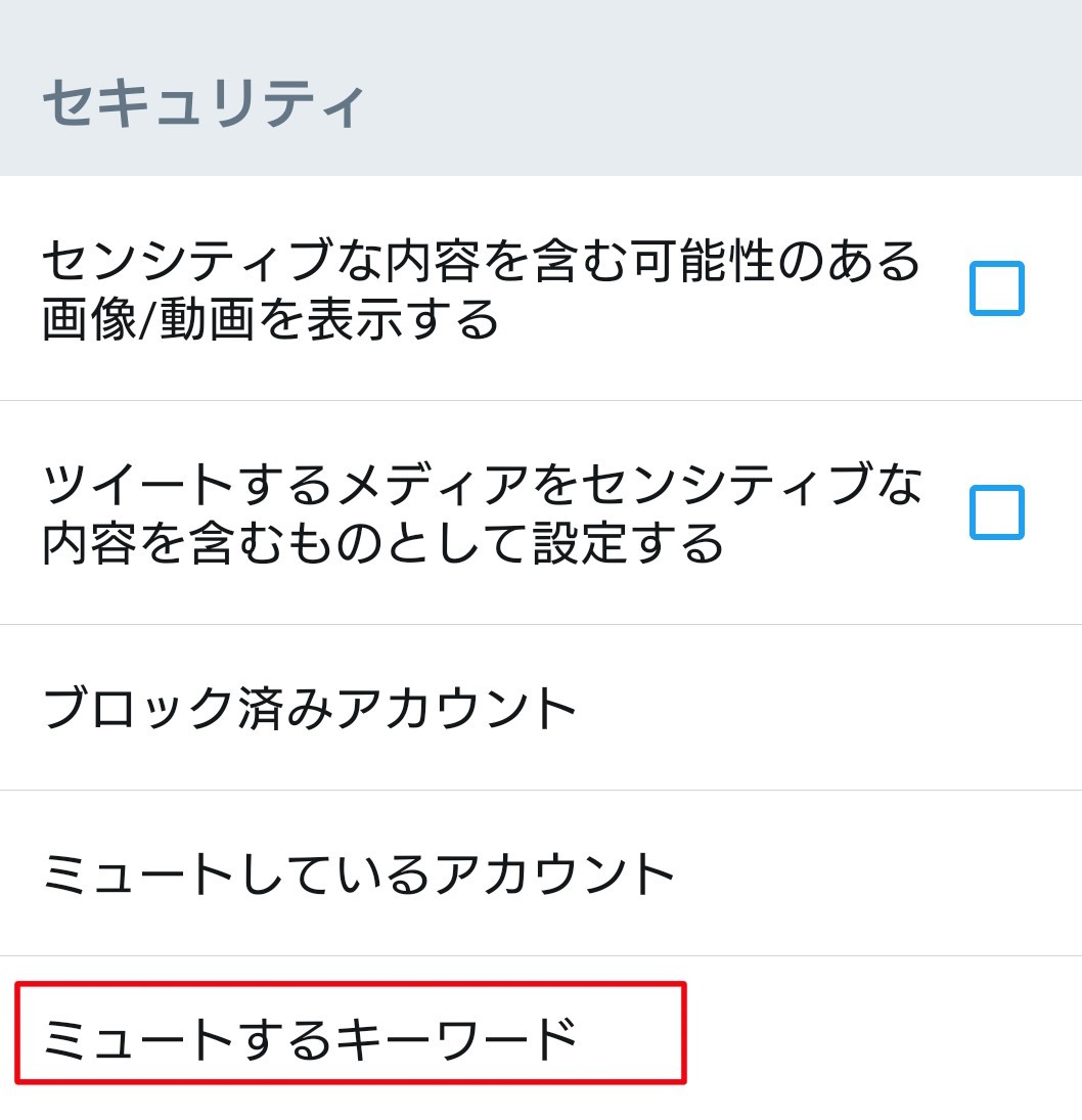 「セキュリティ」から「ミュートするキーワード」を選びます。