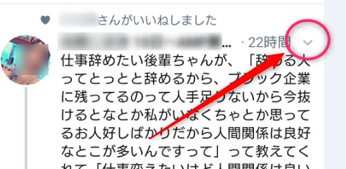 「いいね」の多いメンバーのツイートを選択し、右上の「▼」をタップします。