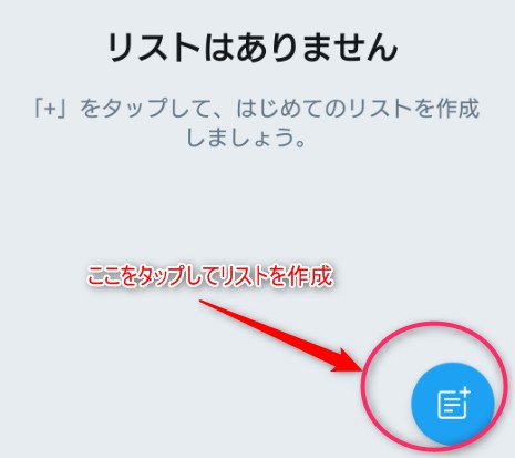 「リストを作成」もしくは、アイコンをタップして新規で「リスト」を作成します。