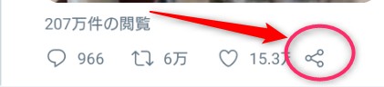 「ブックマーク」を保存するためには、該当ツイートの右下のアイコンをタップします。