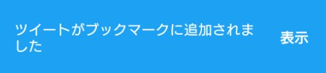 正しく「ブックマーク」に追加されると、完了表示が出ます。そのまま「表示」をタップすると「ブックマーク」ページへと移動でき、保存した情報を一覧で閲覧できます。