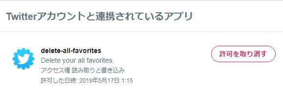 ツールを使い終わったら、「Twitter」側、もしくはツールページからアカウントとの連携を中止します。こうすることで、自分以外の誰かがPCを触ってデータを削除することを防げます。