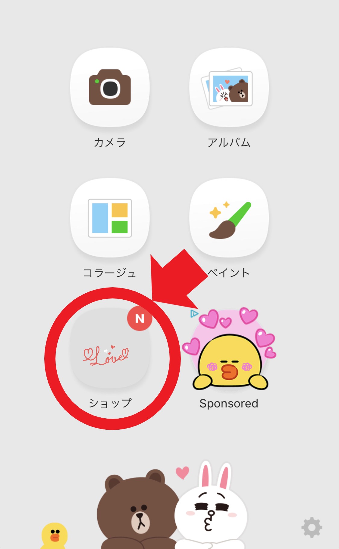 まず、「LINE Camera」をダウンロードしたら、アプリのホーム画面を開きます。ホーム画面左下にある「ショップ」をタップしてアプリ内のアイテムショップを表示しましょう。