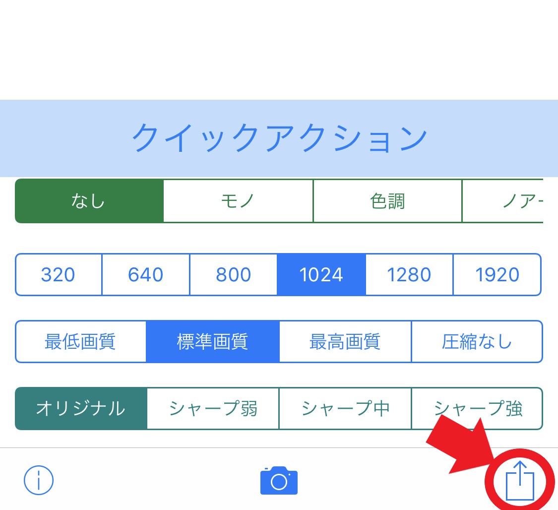 リサイズが完了したら、画面右下のシェアボタンから画像を保存しましょう。