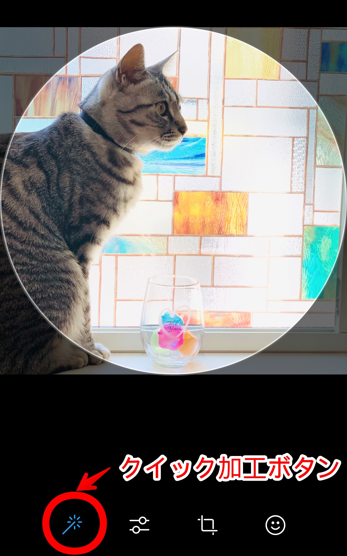 画像のトリミング後、加工画面下にはいくつかのメニューが表示されます。画面下メニューの1番左にあるペンのマークをタップしてクイック加工をしましょう。クイック加工をすると、画像の明るさやコントラストなどが自動調整され、くっきりと見やすい画像に変化します。