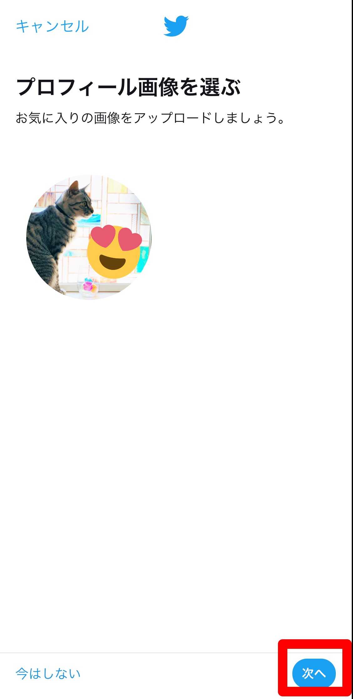 画像のトリミングや加工が終わったら、画面右上にある「完了」をタップします。すると、作成した画像がアイコンとして設定されます。そのほかのプロフィールも未設定の場合は、「次へ」を押して設定を続けましょう。