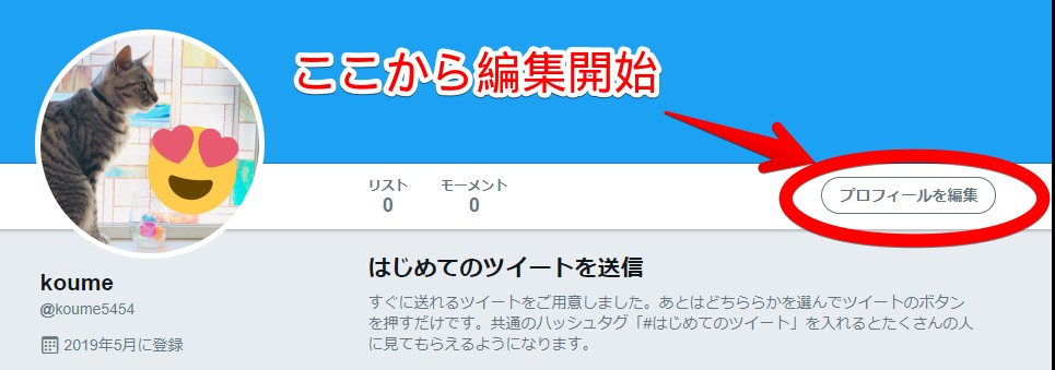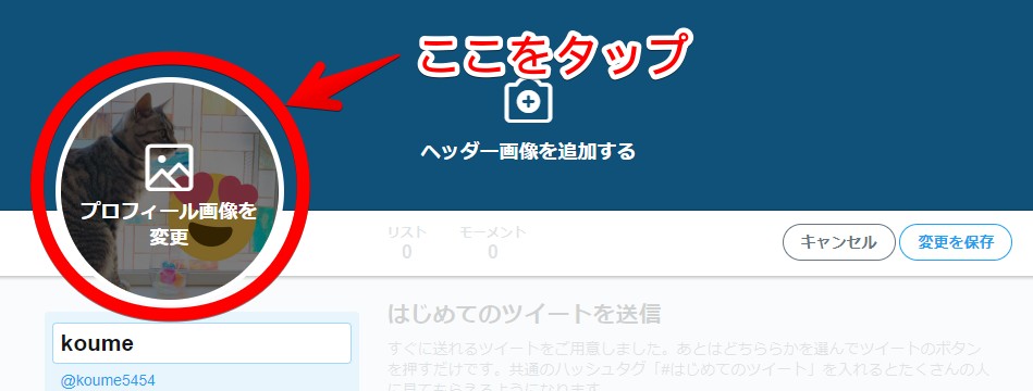 次はPCからTwitterアイコンを変更する方法を紹介します。