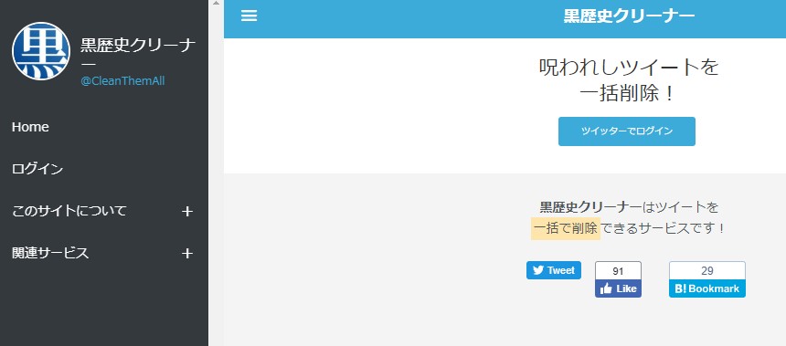大量のTweetを一括削除したい場合に使えるツールの1つが「黒歴史クリーナー」です。これを利用すると全てのTweetをまとめて削除できるので、一括削除したい場合は使ってみてください。