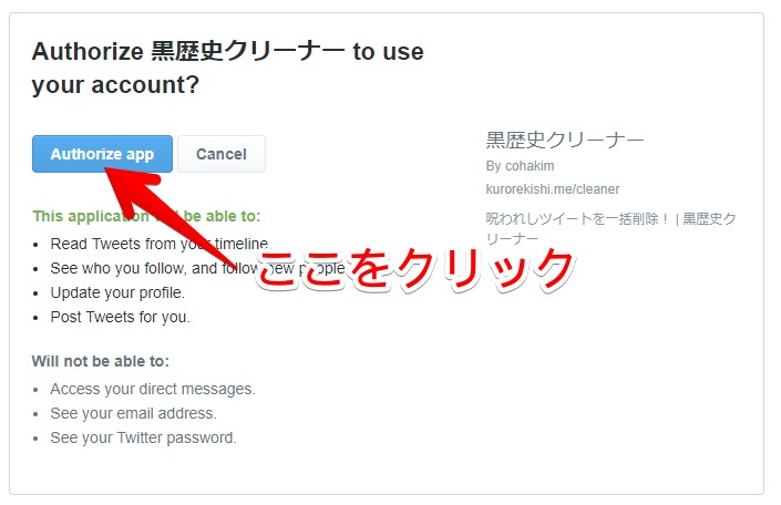 サードパーティ製のツールを利用してツイ消しした場合、認証を解除しておかないとスパムやクラッキングの原因になることがあります。セキュリティリスクを回避するためにも、ツールを利用し終わったらすぐに連携を解除してください。