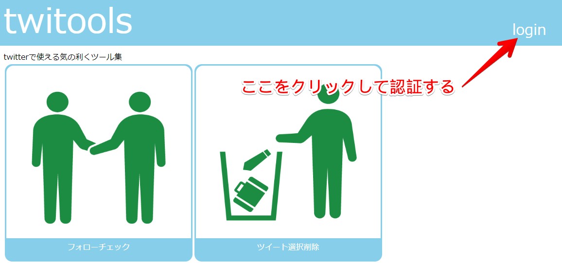 公式サイトにアクセスしたら、ページ上部にある「ツイッターでログイン」というボタンをクリックしましょう。