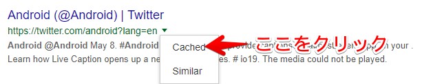 これでキャッシュが表示されるので、ツイ消しされたTweetが残っていないかどうかを確認してください。ただし、この方法はツイ消ししてからすぐに使わないとヒットしにくいので注意が必要です。削除から時間がたったTweetを探すのには向いていません。