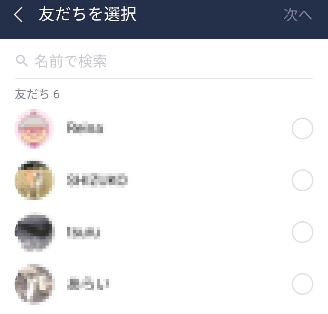 友だち選択画面まで進めると、ブロック済みのアカウントは非表示になり選べません。