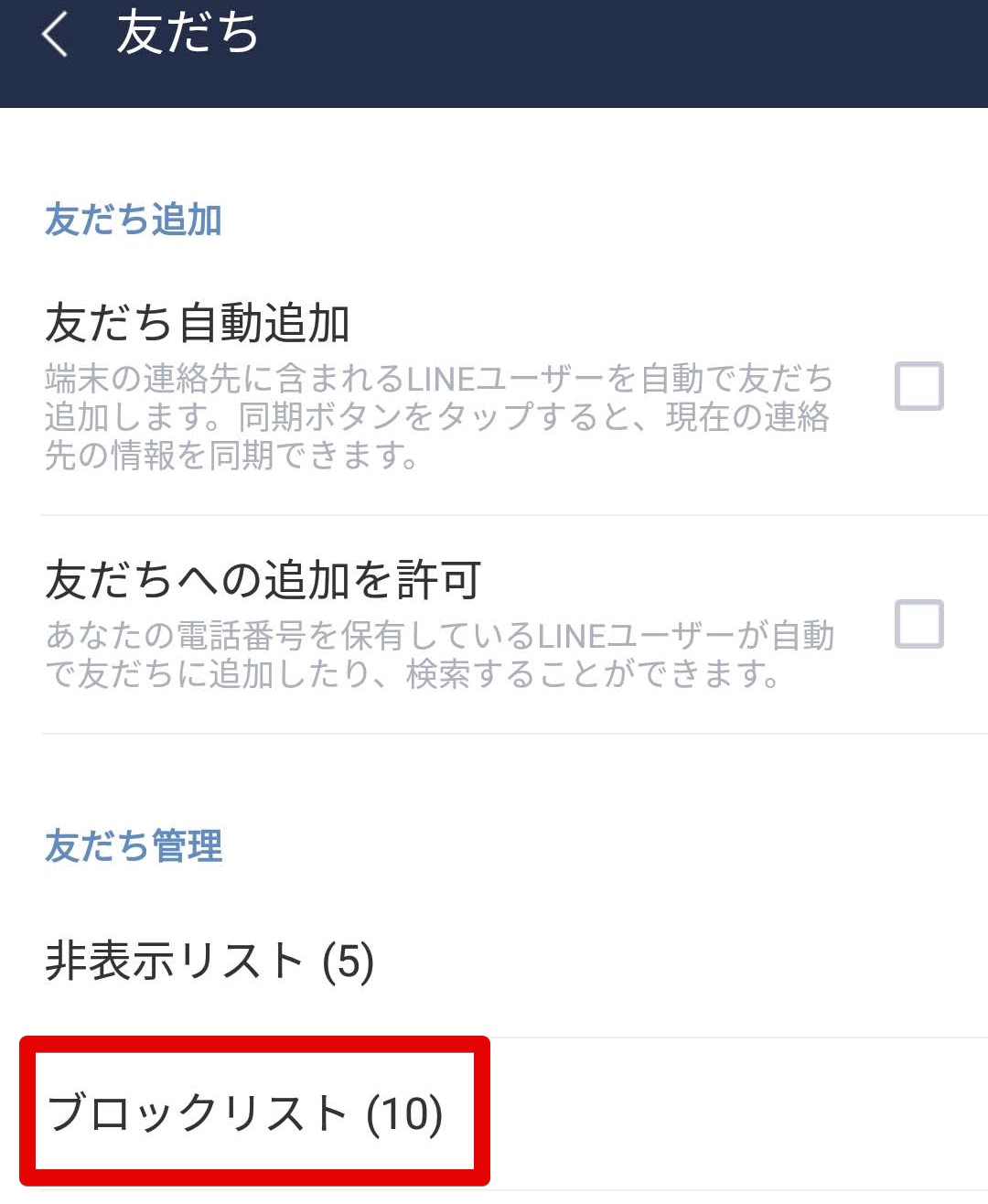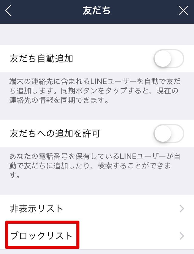 ブロックする場合は、右端の「ブロック」をタップしてください。