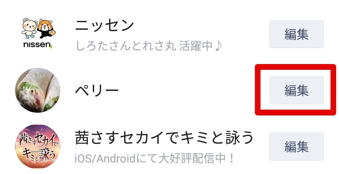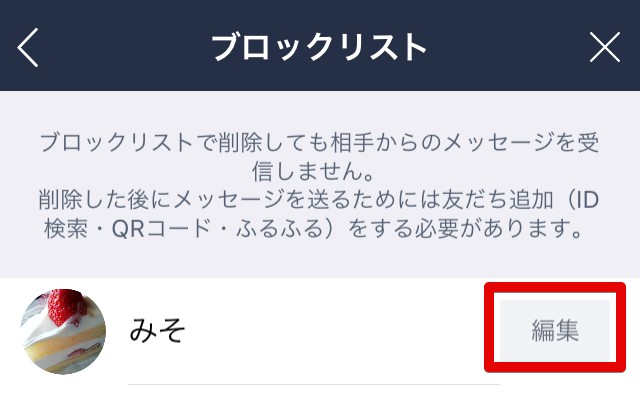 ブロックを解除したいアカウントの「編集」へ進みます。