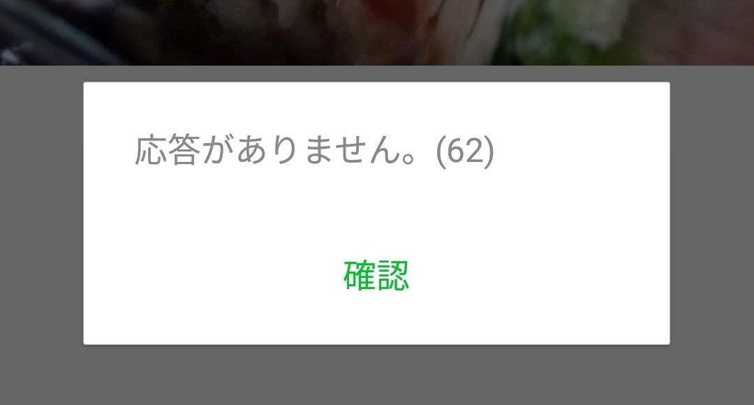 ブロックされている場合、Android版アプリでは2分ほどコールを続けると「応答がありません(62)」と表示され、コールが自動的に切断されます。Android版アプリでは、コール後に表示が出たらブロックの可能性が高くなります。