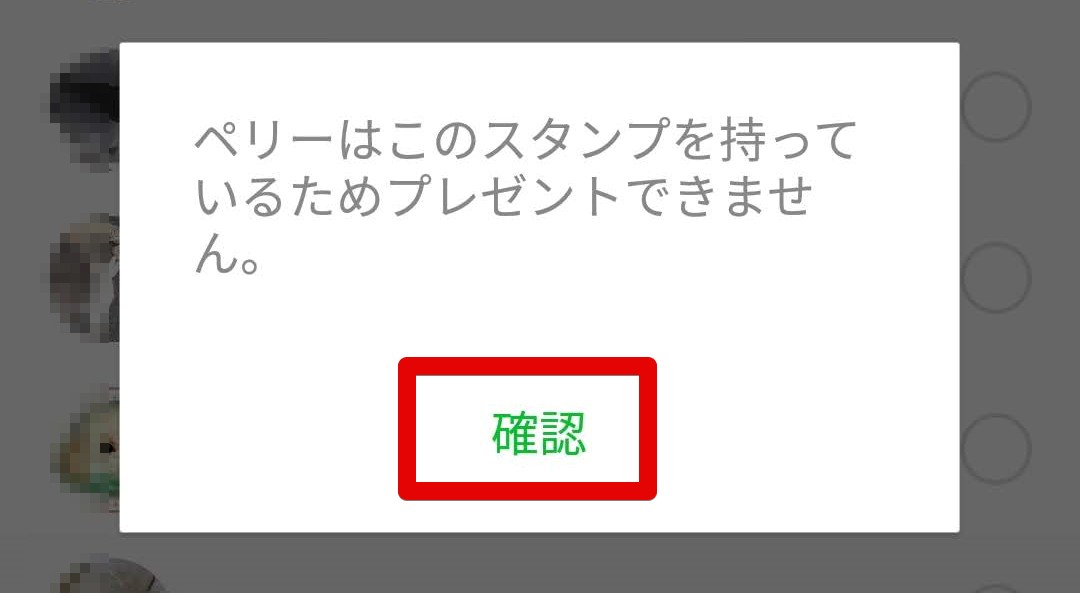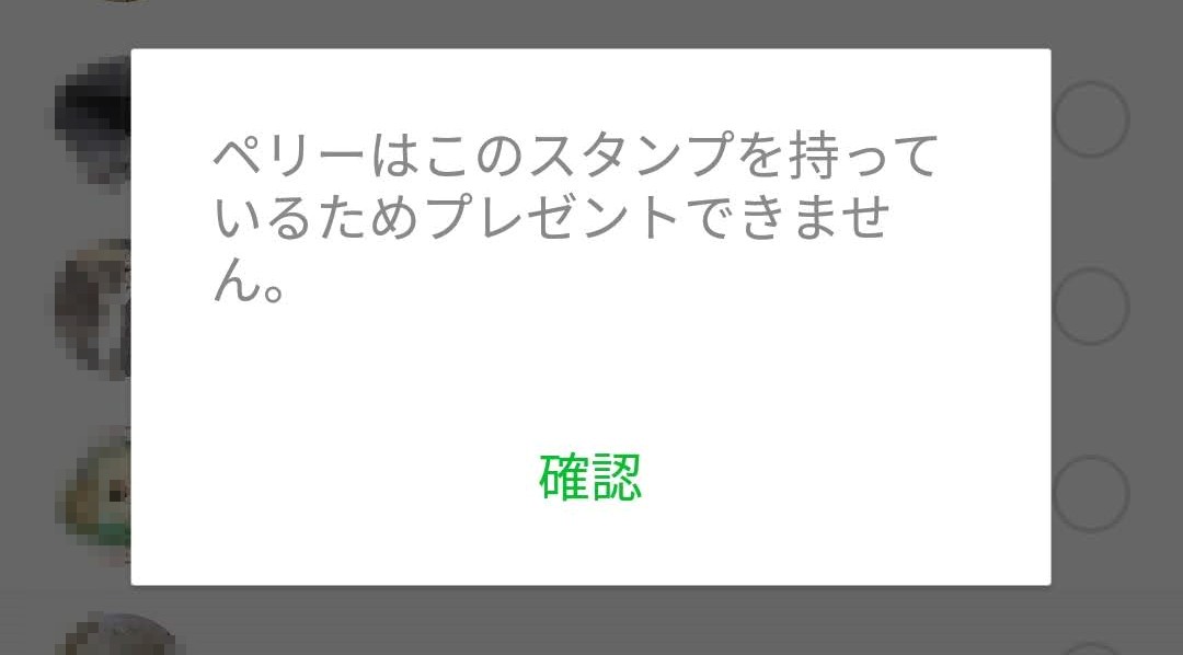 「このスタンプを持っているためプレゼントできません」と表示された場合は、ブロックされている可能性があります。