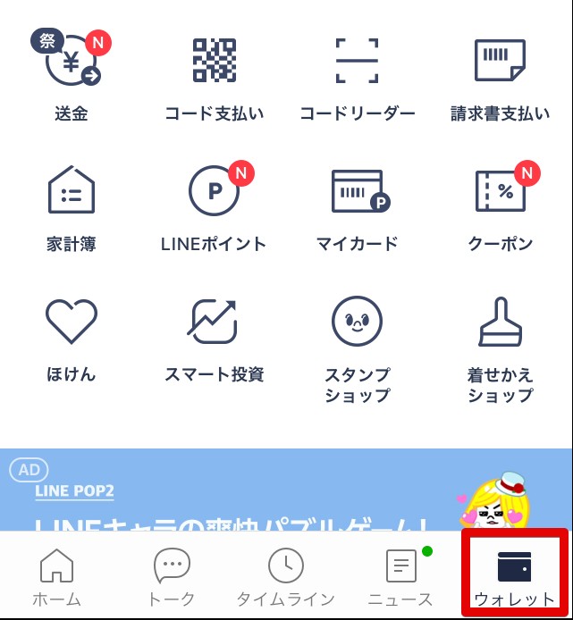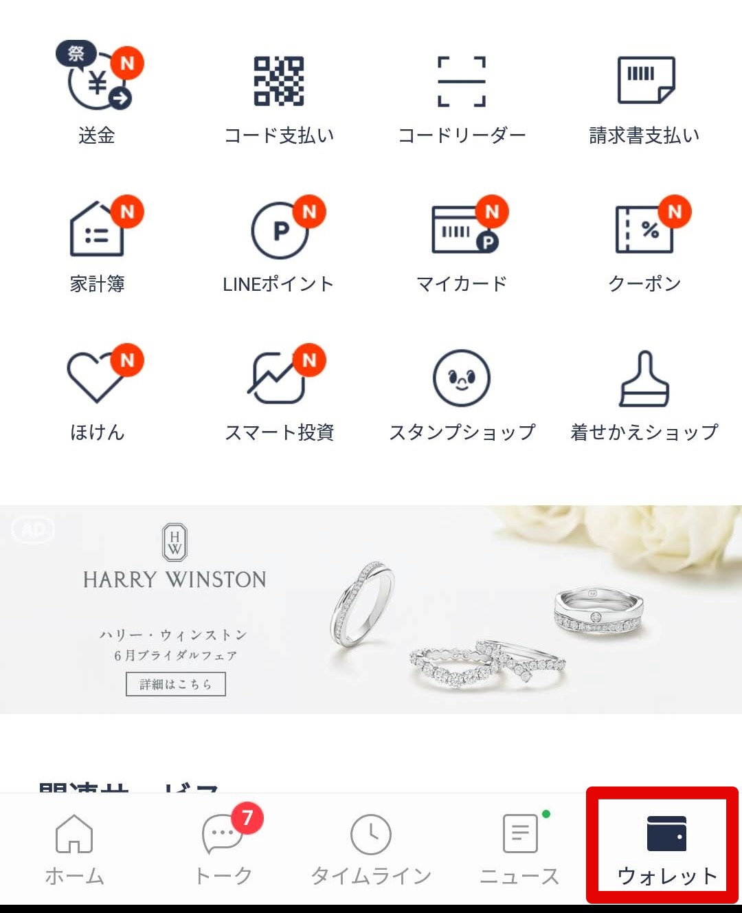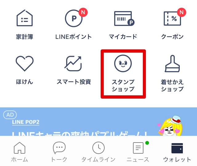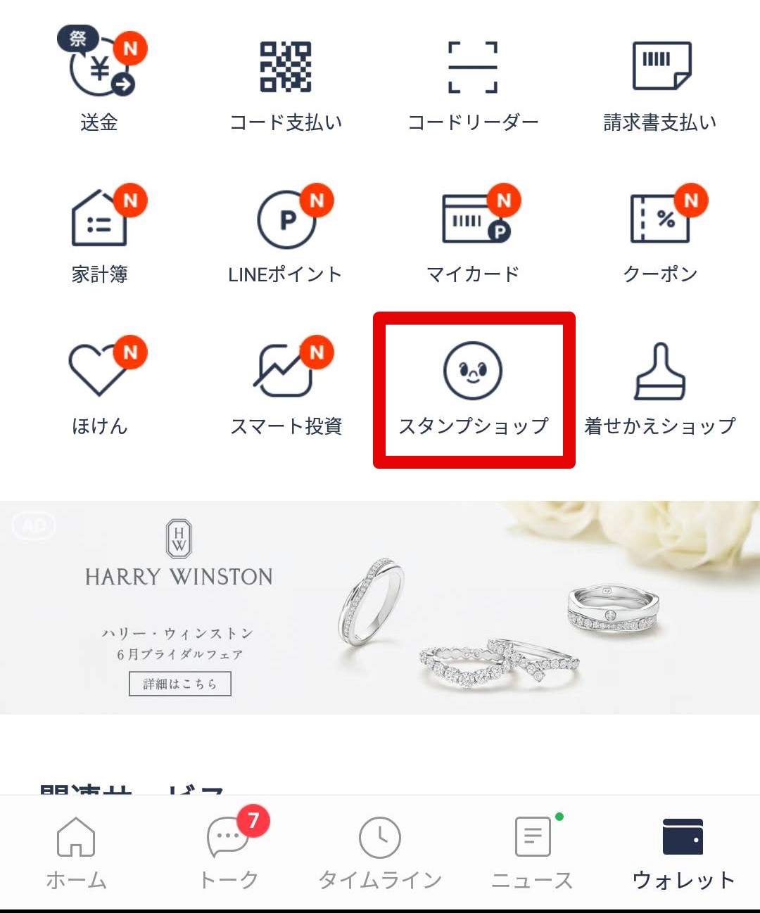 「ウォレット」メニューから「スタンプショップ」を選択します。