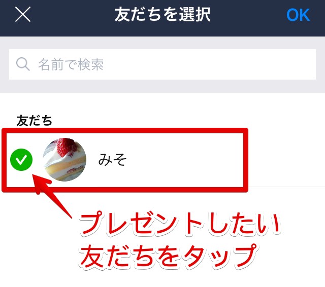 iPhone版アプリでLINEスタンプをプレゼントする方法