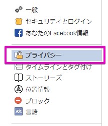 設定画面になったら、左側メニューから「プライバシー設定」をクリックします。