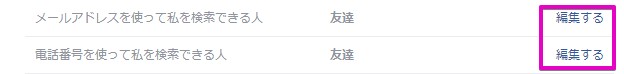 「プライバシー設定とツール」の画面が現れるので、「検索と連絡に関する設定」の項目のなかの「メールアドレスを使って私を検索できる人」「電話番号を使って私を検索できる人」の「編集する」をクリックします。