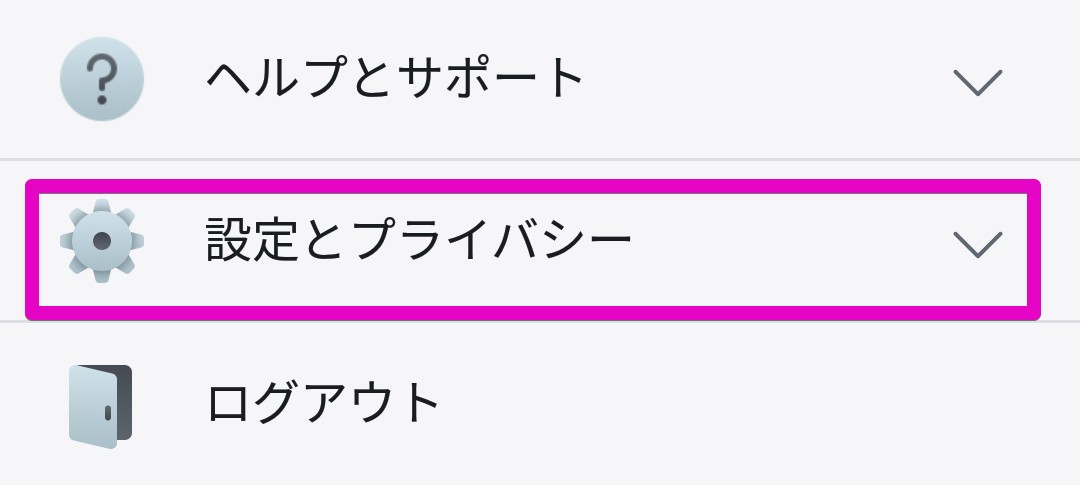 「設定とプライバシー」内のメニューから「設定」をタップします。