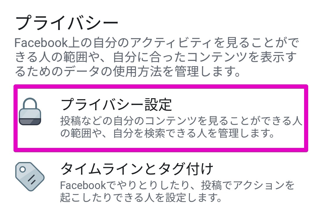 次画面で、プライバシーの項目から「プライバシー設定」を選択します。