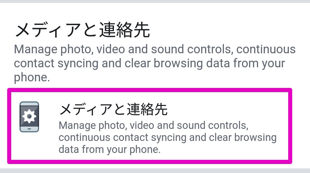 「メディアと連絡先」の画面に変わったら、「継続的な連絡先のアップロード」をオフにします。