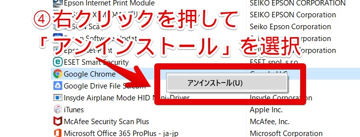 次に「Google Chrome」をアンインストールします。今回はWindowsでのアンインストール方法を紹介します。