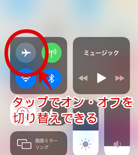コントロールセンターは下から上に向けてスワイプすることで表示されます。飛行機マークをタップするだけで切り替えが可能なので、Wi-Fi環境のチェックとともに試してみると良いでしょう。