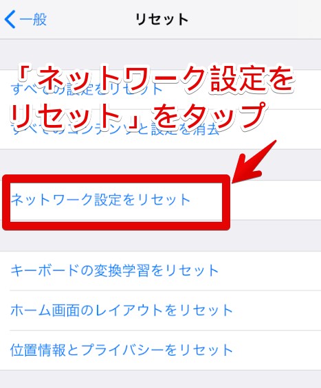 機内モードで再接続しても改善されないときは、ネットワークの設定をリセットを試してみましょう。ただしネットワークの接続をリセットすると、iPhone内で設定したWi-Fiの情報が、文字通り全てリセットされます。