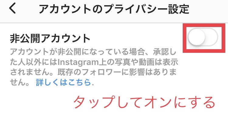 「非公開アカウント」のボタンをオンにすれば完了です。