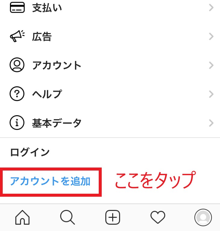 画面下部の「アカウントを追加」の文字をタップします。