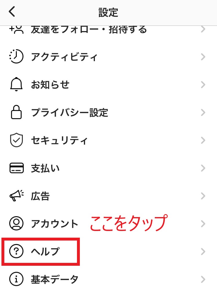 画面最下部の「設定」→「ヘルプ」→「ヘルプセンター」をタップします。