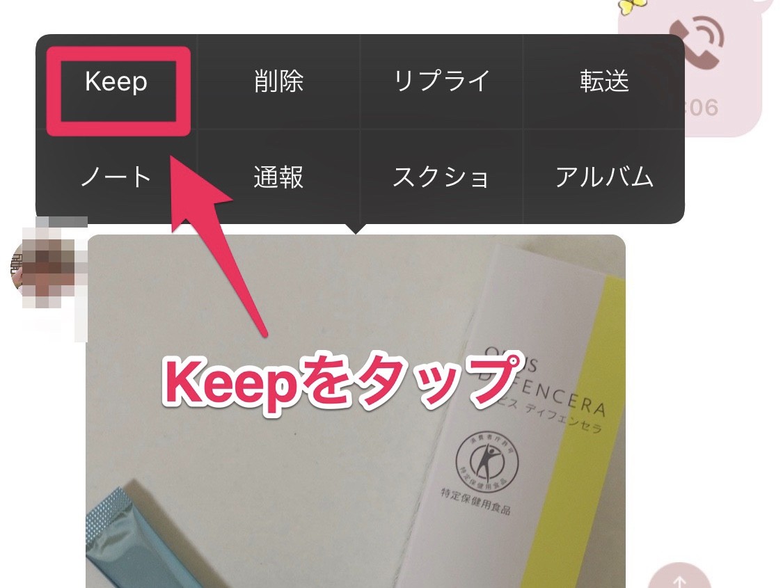 まず、LINEのホーム画面にある「Keep」をタップします。