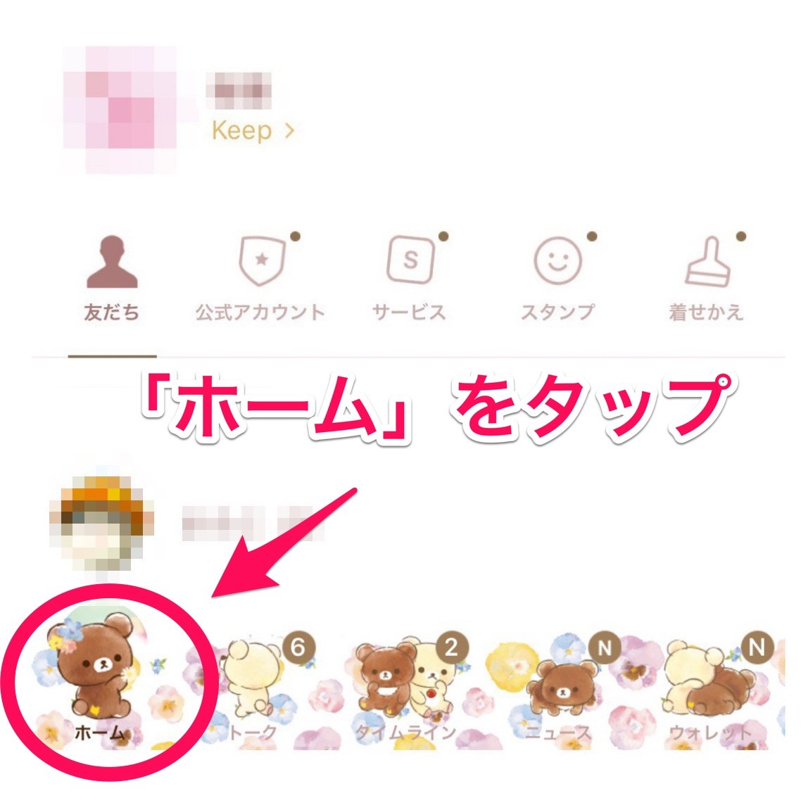LINE Keepに保存したデータを確認するためには、LINEの左下にある「ホーム」をタップします。