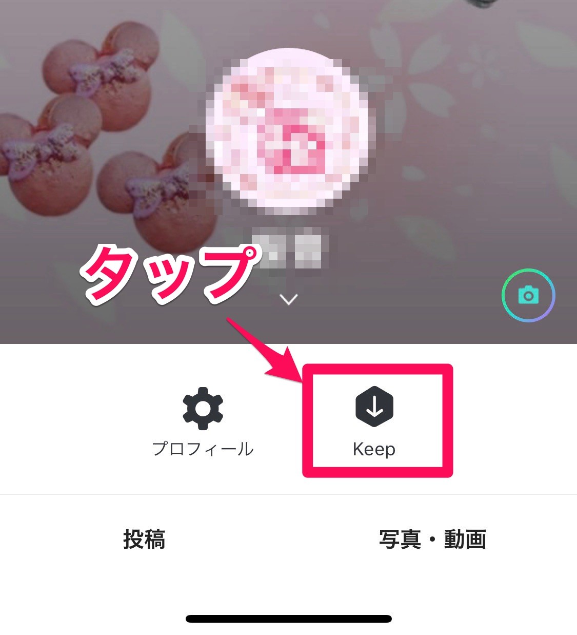 ホーム画面が開いたら、アカウント名の下にある「Keep」をタップしましょう。しかし、アカウント名とKeepの位置が近いため、誤ってアカウント名をタップしてしまうこともあり得ます。