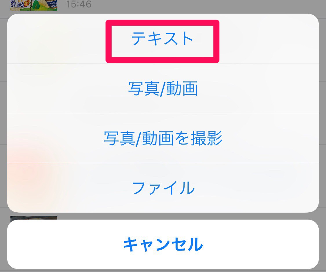 LINE Keepするための項目が表示されるので、今回は「テキスト」を選択します。