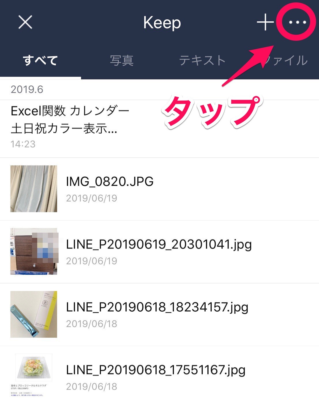 Keep画面にあるタブの「写真」、「テキスト」、「ファイル」からも同様の削除方法で行えるため、操作しやすい方法で削除するとよいでしょう。