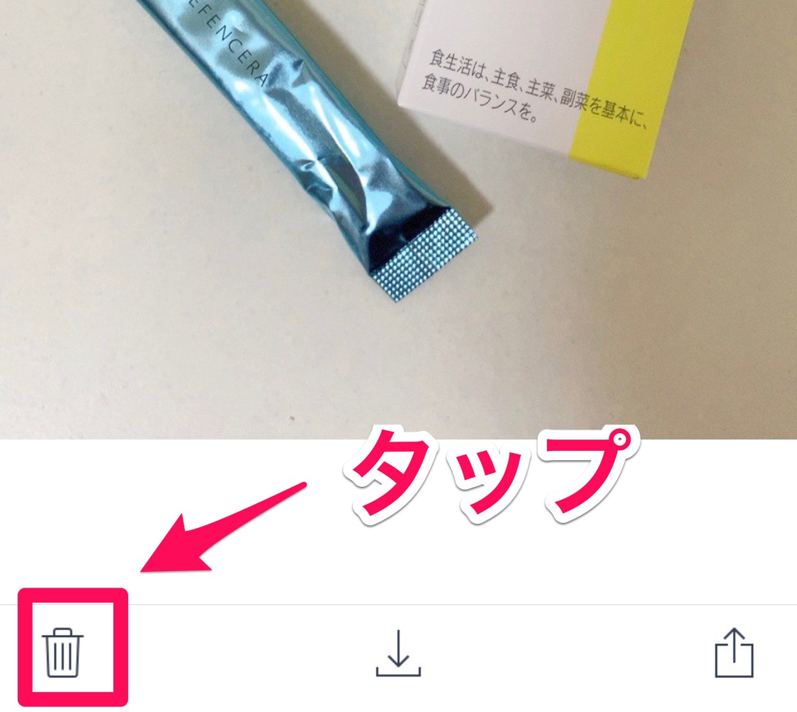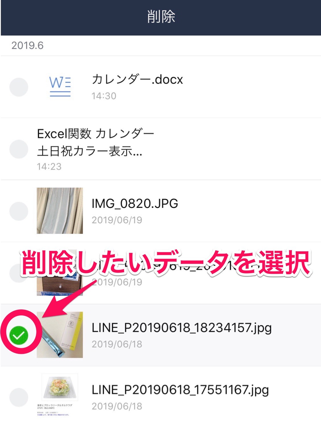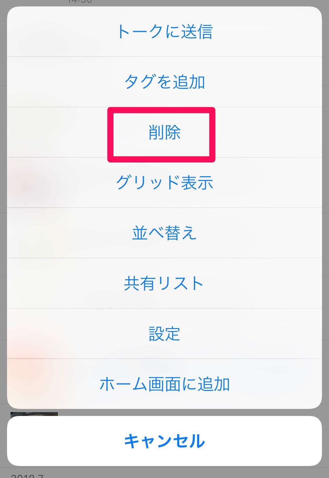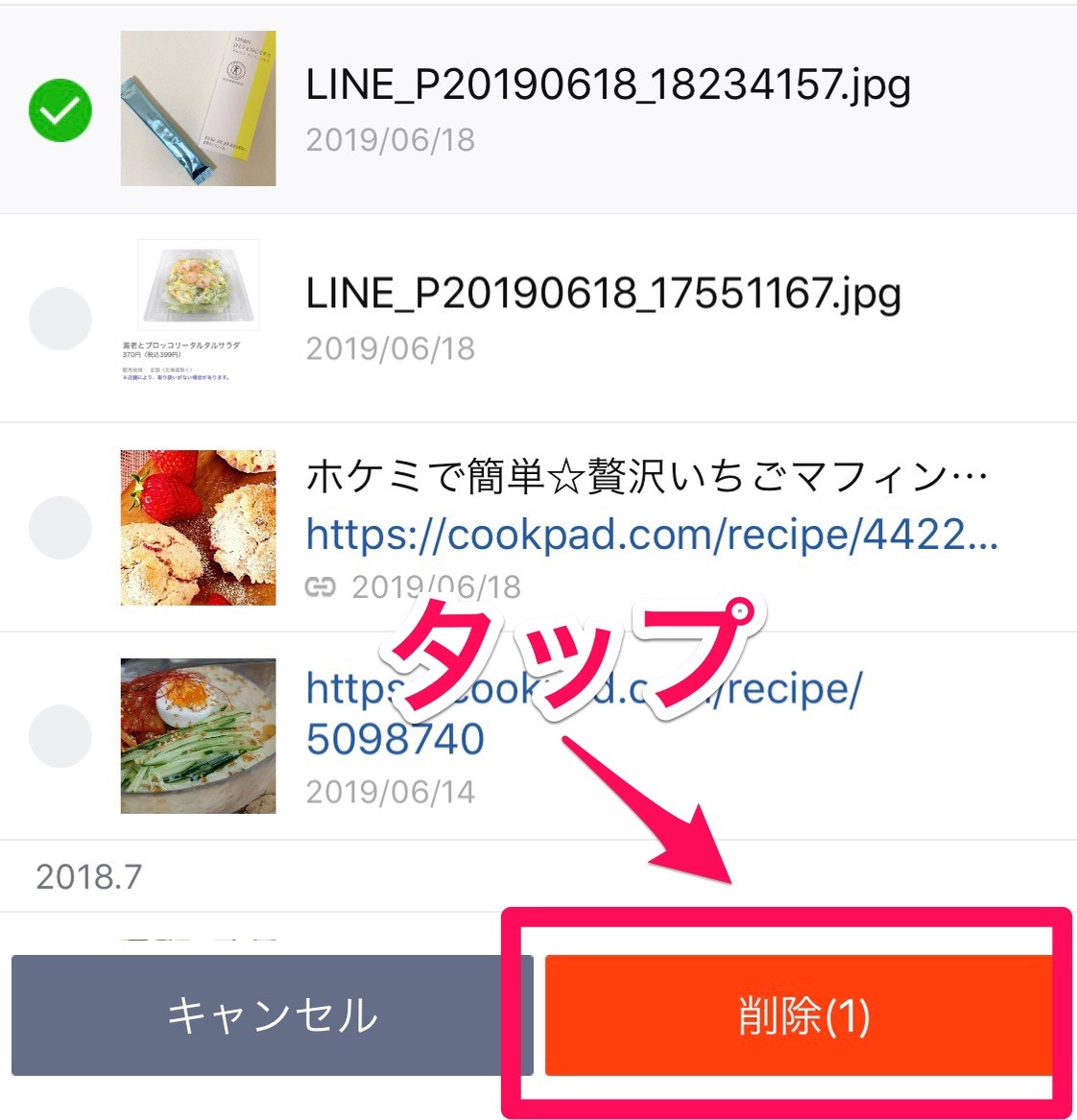 右下に表示されている「削除」をタップすると、選択したデータが削除されます。