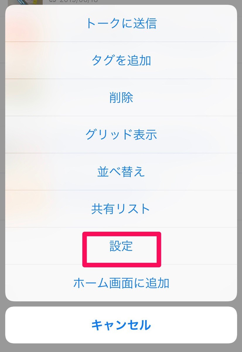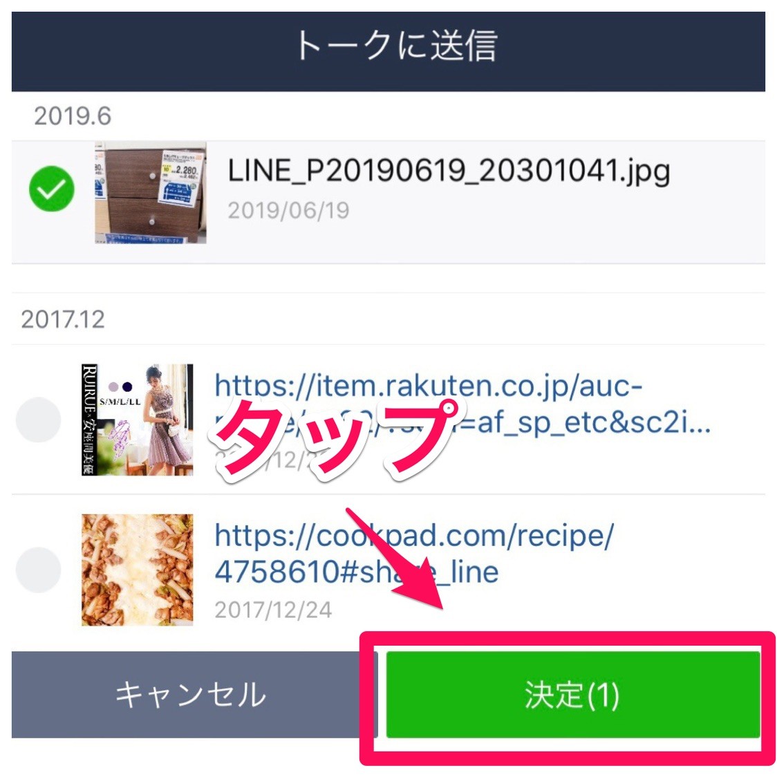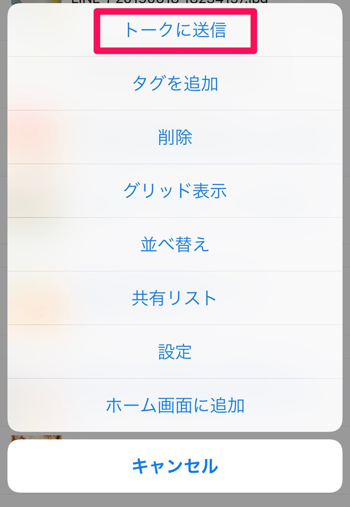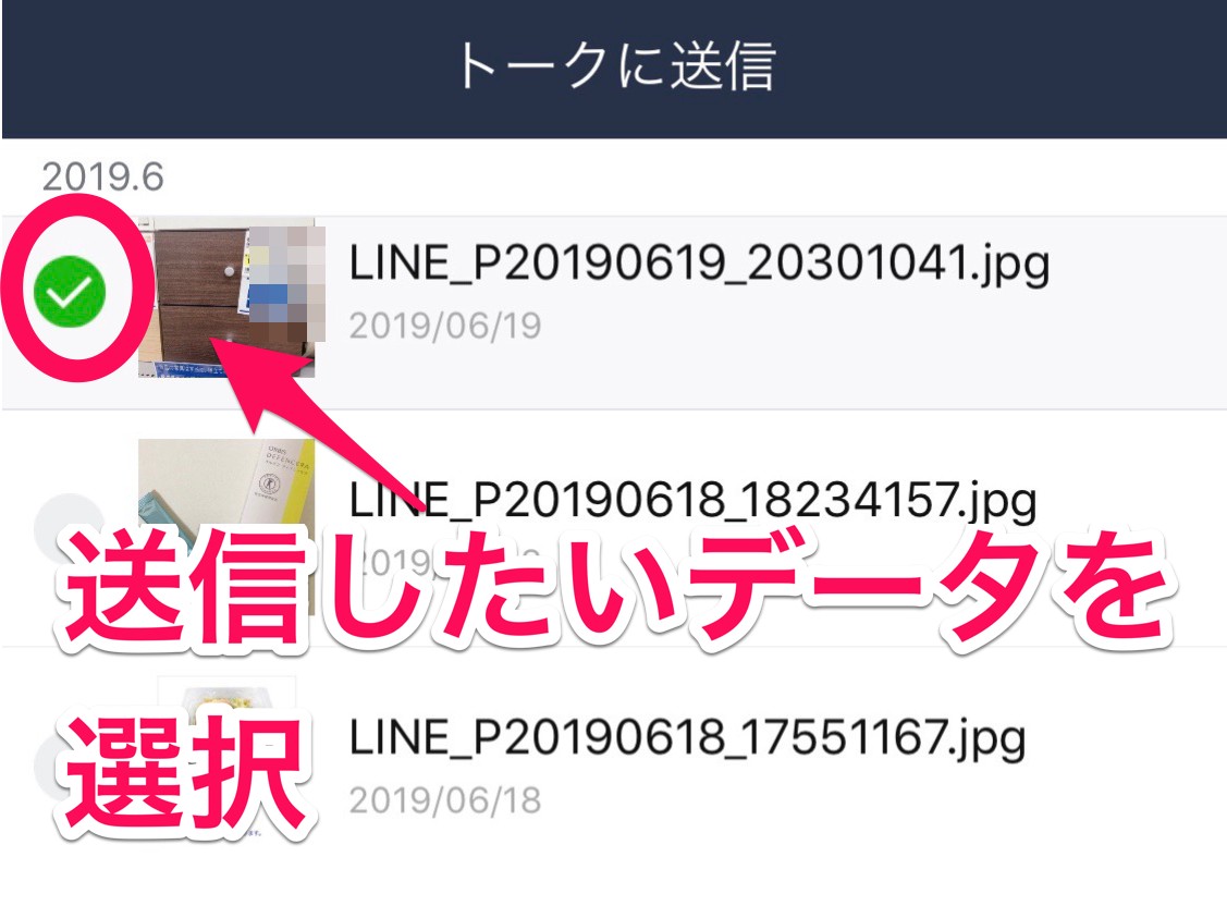 「トークに送信」一覧のなかから、送信したいデータをタップします。